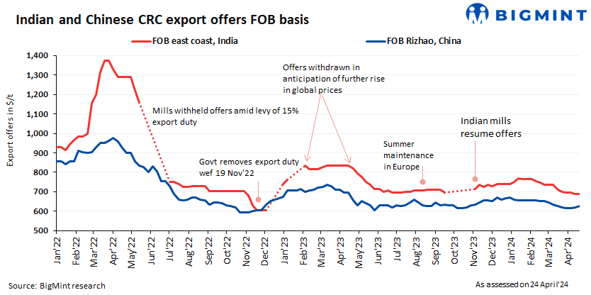 Indian CRC export offers to EU remain range-bound w-o-w amid muted trade
