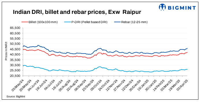 Sponge iron prices edged up by INR 100-200/t. Prices rose by INR 200/t in the Raipur and Ramgarh markets.
