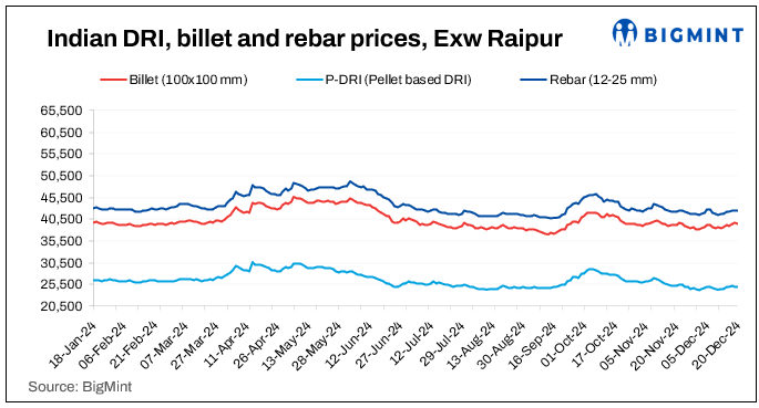 Sponge iron prices fluctuated in the range of INR 100-500/t. The Hyderabad market witnessed a price rise of INR 500/t However, a price droped of INR 100/t was seen in Raigarh and Raipur.