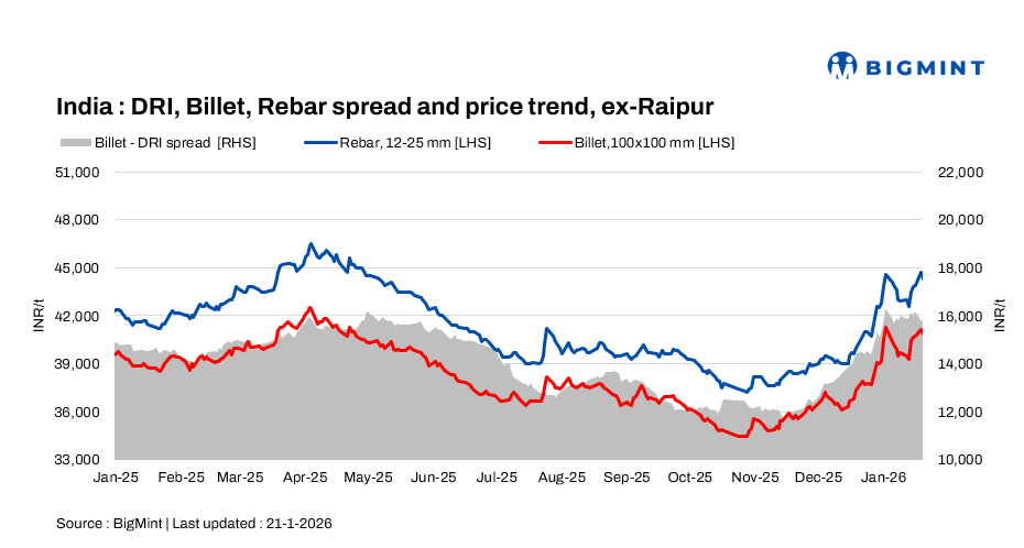 India’s induction furnace (IF) steel prices fell on 21 January 2026 due to subdued buying in most regions.