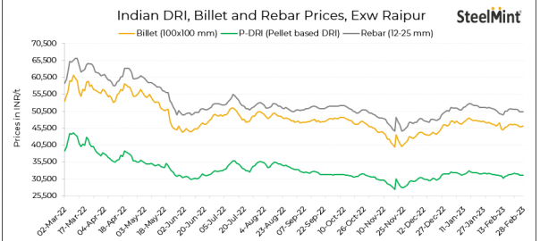 Rebar (Fe 500) offers rose in the range of INR 100-500/t. Prices in the Bengaluru market rose by INR 500/t d-o-d.