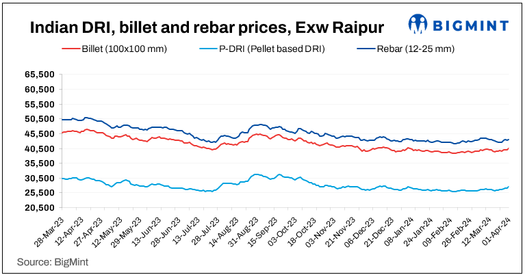 Billet prices fell in the range of INR 100-500/t. The highest drop was seen in Raigarh.