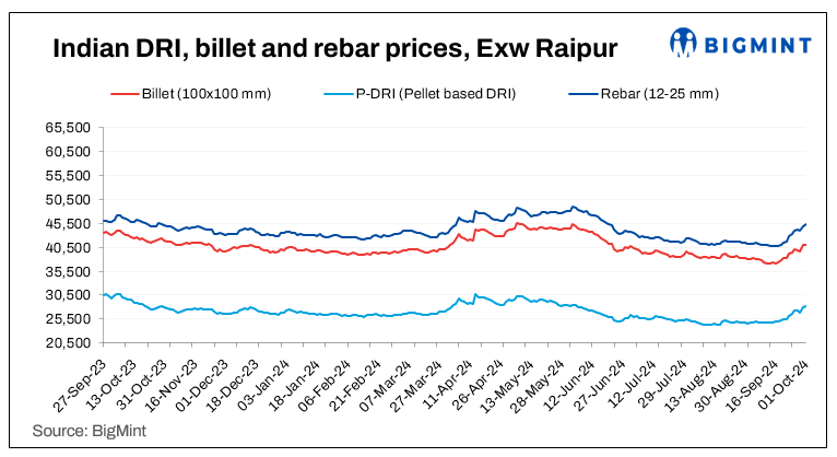 Sponge iron prices rose INR 100-600/t. The highest surge was seen in the Raigarh market.