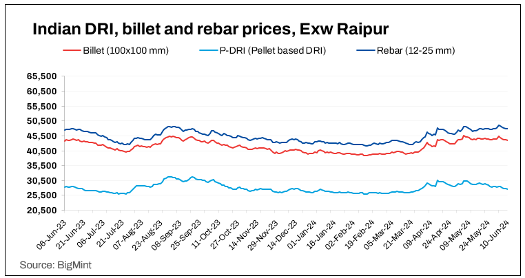 India’s induction furnace (IF) steel market prices edged lower on 10 June, 2024. Offers announced by the mills dipped in the range of INR 100-600/tonne (t) d-o-d compared to the previous trading session.