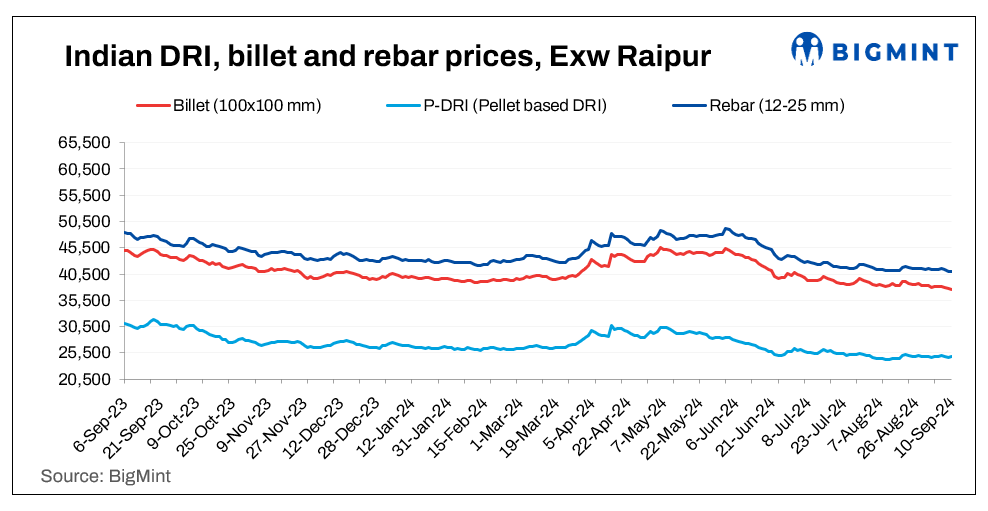 Billet prices declined by INR 100-300/t, with the most significant drops occurring in the Raigarh market.