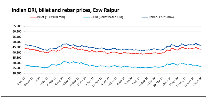 Sponge iron prices decreased by INR 100-200/t, with Hyderabad and Jharsugda market witnessing the sharpest drop.