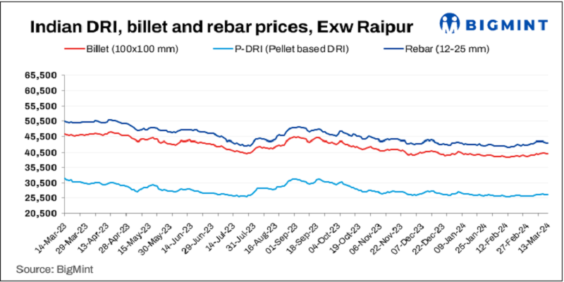 Sponge iron prices varied in the range of INR 50-100/t.