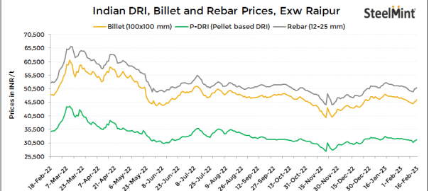 Billet prices increased in the range of INR 200-600/t. Prices rose by INR 600/t seen in Raigarh’s billet market today.