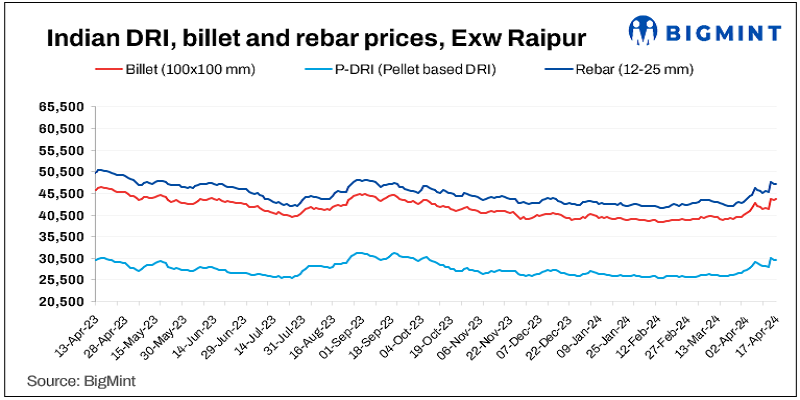 Billet prices varied in the range of INR 100-600/t. Prices in Raigarh rose by INR 600/t. However, rates declined by INR 100/t in Mumbai.