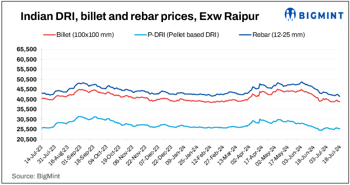 Billet prices decreased by INR 100-500/t. The sharpest decrease was seen in Hyderabad and Mandi Gobindgarh.