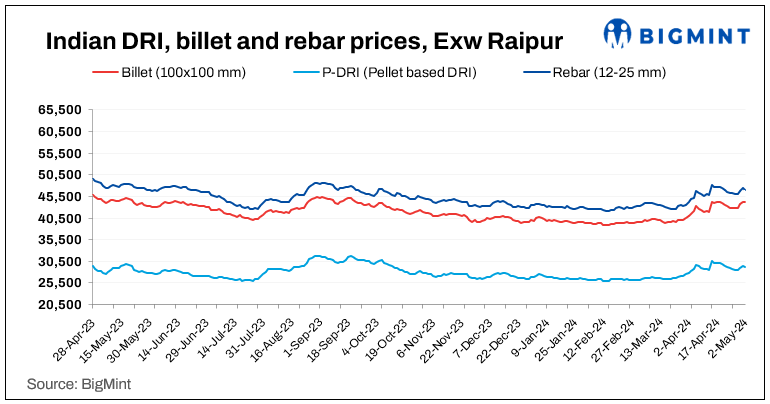 Billet prices fluctuated in the range of INR 50-500/t.