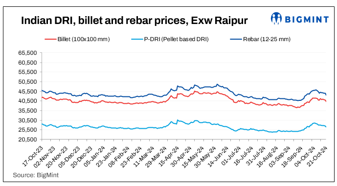 Sponge iron prices fell by INR 300-400/t, with the steepest drop noted in the Raigarh market.