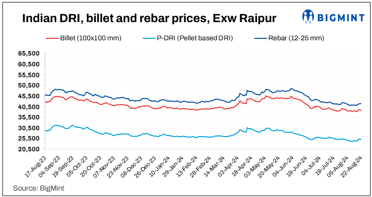 Billet prices fell in the range of INR 100-450/t. The highest drop was seen in Raipur.