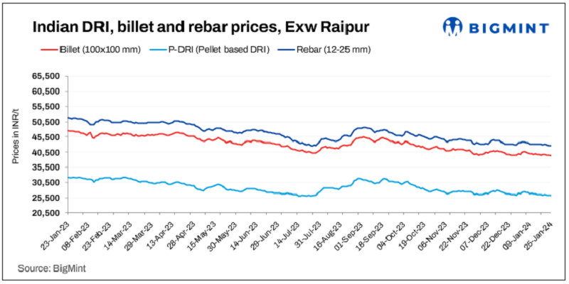 India’s induction furnace (IF) steel market witnessed a negative price trend on 25 January, 2024, as offers floated by the mills decreased in the range of INR 50-400/tonne (t) d-o-d compared to the previous trading session.
