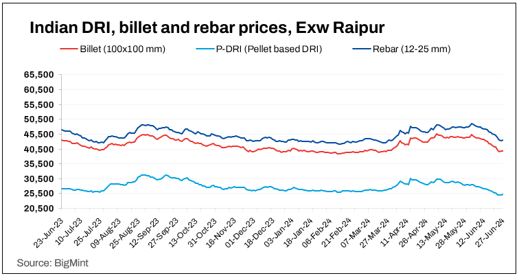 Billet prices increased by INR 150-700/t. The sharpest increase was seen in Odisha’s Rourkela market.