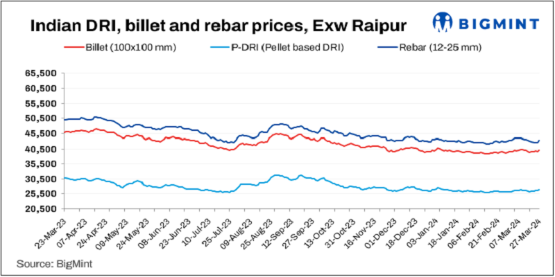 Sponge iron prices increased in the range of INR 100-500/t, with the Jharsuguda market witnessing the sharpest hike.