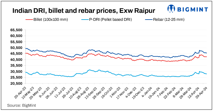 Sponge iron prices dropped in the range of INR 50-250/t, with the steepest drop seen in the Durgapur market.