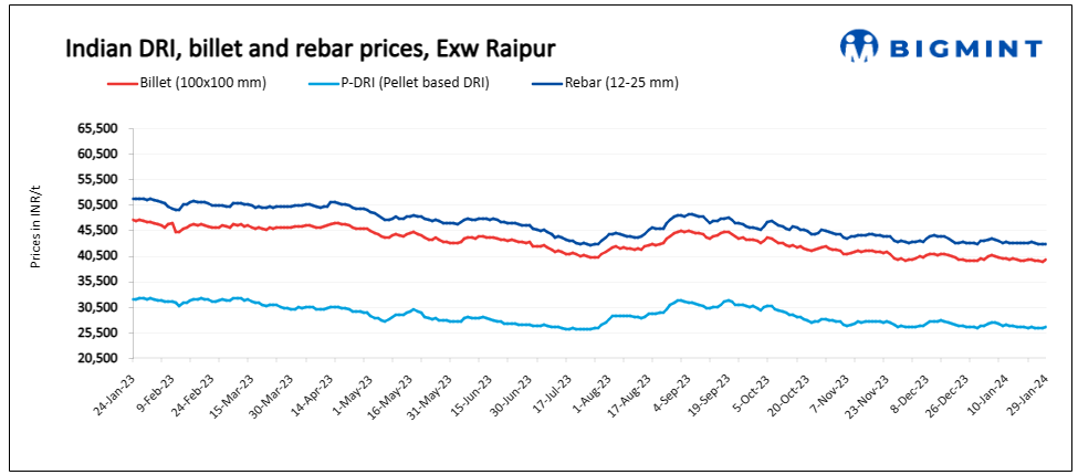 Sponge iron prices fluctuated by INR 50-150/t. Prices increased by INR 100/t in the Bellary and Hyderabad markets. However, a price drop of INR 150/t was noticed in the Raipur market.