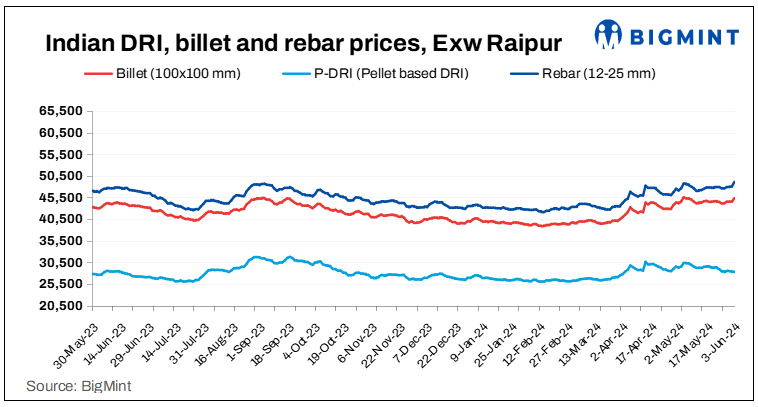 Sponge iron prices rose by INR 250-1,000/t, with the Hyderabad market witnessing the sharpest rise.