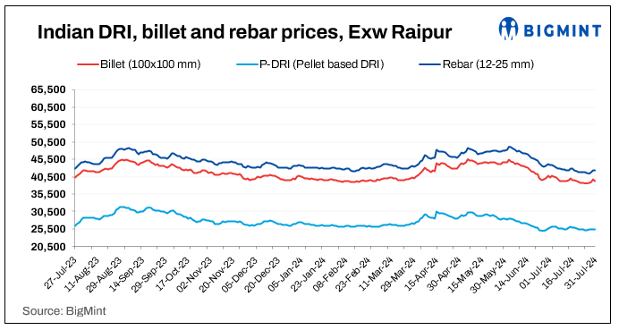 Sponge iron prices saw a fall of INR 100-300/t with the sharpest drop in Durgapur market.