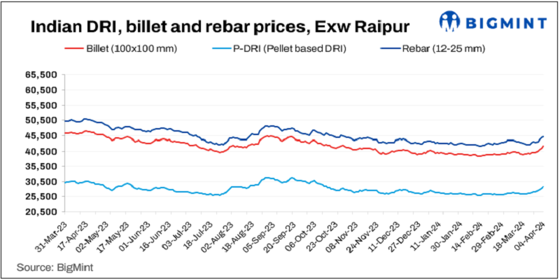 Sponge iron prices rose in the range of INR 100-550/t. The sharpest rise was seen in the Raigarh market.