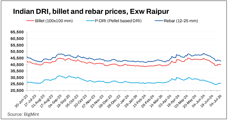Sponge iron prices dropped by INR 50-200/t across regions, except in the Raipur market where a slight increase of INR 50/t was noticed.