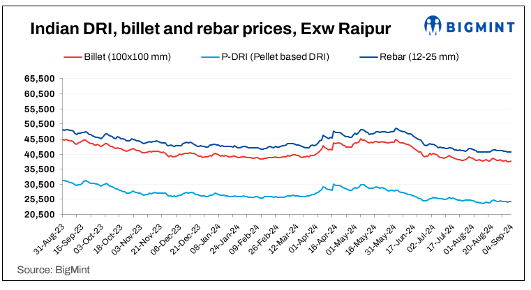 Sponge iron prices varied by INR 50-500/t, with the steepest fall of INR 500/t seen in the Durgapur market. A slight increase of INR 100/t was observed in the Raipur, Raigarh, and Jharsuguda markets.