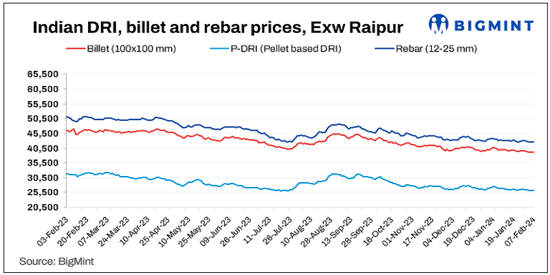 Sponge iron prices varied slightly in the range of INR 50-200/t. The Durgapur and Raipur markets rose by INR 50/t. However, Odisha’s Jharsuguda market fell by INR 200/t.
