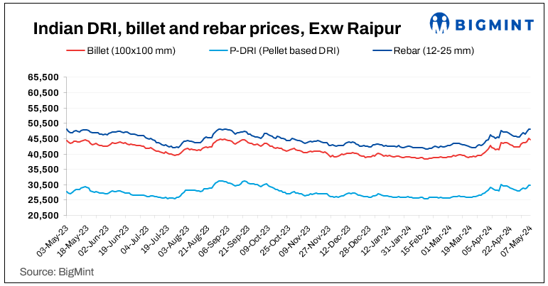 Sponge iron prices fell in the range of INR 50-300/t. The sharpest drop was seen in the Durgapur market.