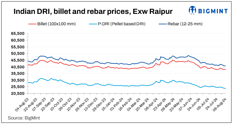 Sponge iron prices witnessed a drop of INR 100-150/t across regions, except for the Raipur market where a price rise of INR 50/t was noticed.