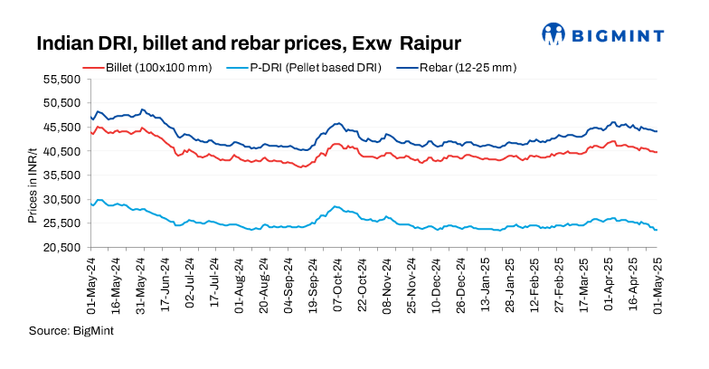 Billet tags decreased by INR 100-200/t d-o-d, with the highest drop of INR 200/t seen in Hyderabad, and increased INR 250/t at Raigarh.