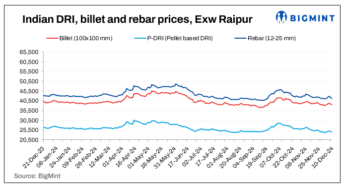 India’s induction furnace (IF) steel prices declined on 10 December 2024. Mills reduced offers by INR 100-500/tonne (t) across markets compared to the previous trading session.
