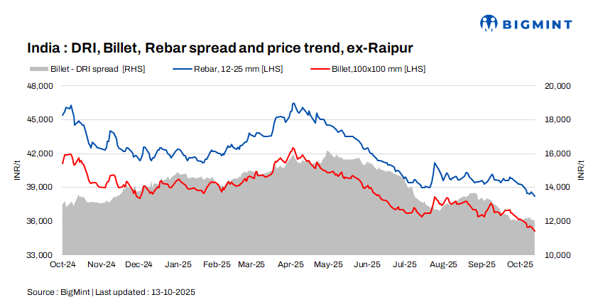 Billet prices declined by INR 100-400/t d-o-d across regions, with the steepest drop of INR 400/t observed in Rourkela, Ahmedabad, Raigarh and Durgapur.