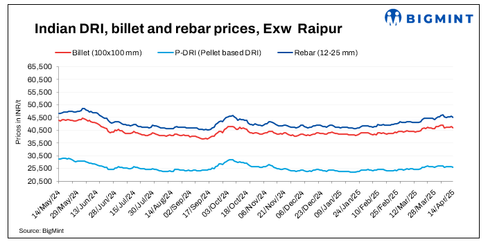 Sponge iron prices decreased by INR 100-350/t d-o-d, with the sharpest fall of INR 350/t seen in the Raigarh market.