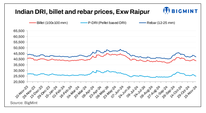 Billet prices decreased by INR 100-300/t, with the sharpest decline seen in the Durgapur and Raipur markets.