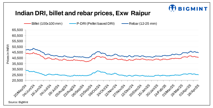 Billet tags declined by INR 50-450/t d-o-d, with the steepest drop of INR 450/t seen in the Ramgarh cluster.