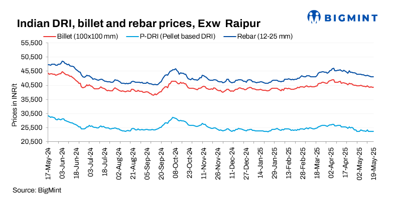 Sponge iron prices decreased by INR 50-200/t d-o-d, with the highest drop of INR 20/t seen in Raigarh.