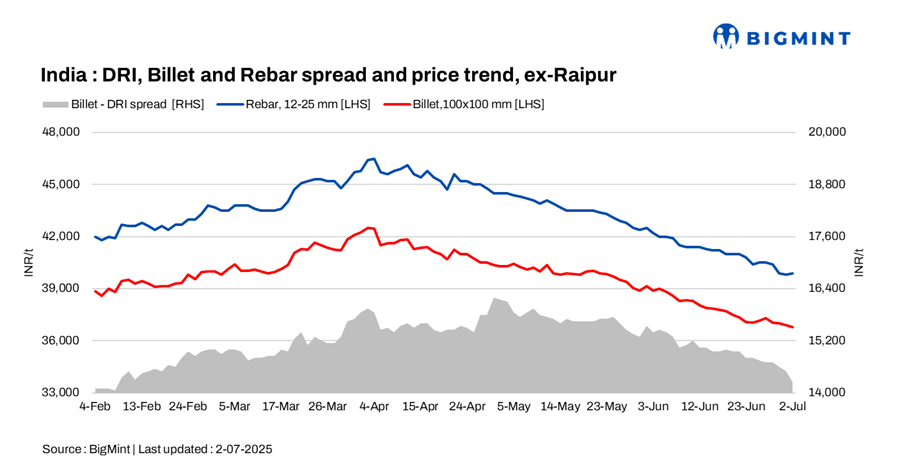 In key regions such as Raipur, a shortage of sponge iron lent some support to prices. Despite this, overall market momentum stayed muted due to limited demand. Prices are expected to remain range-bound in the near term.