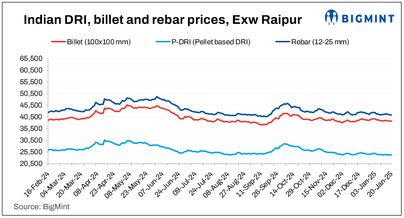 India’s induction furnace (IF) steel prices showed mixed trends d-o-d on 20 January 2025. Across markets, mills adjusted their offers by INR 100-500/tonne (t) compared to the previous trading session.