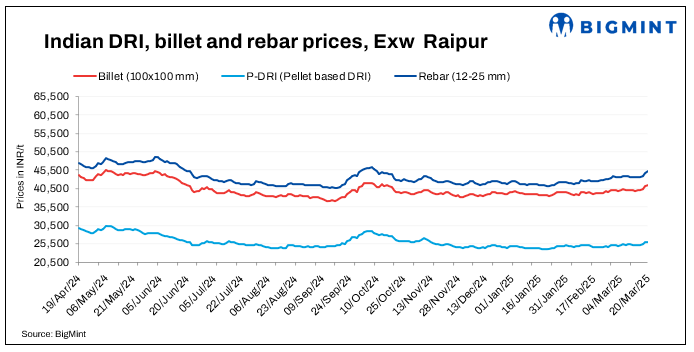 Sponge iron offers raised by INR 100-300/t d-o-d, with a steep rise of INR 300/t in the Hyderabad and Ramgarh markets.
