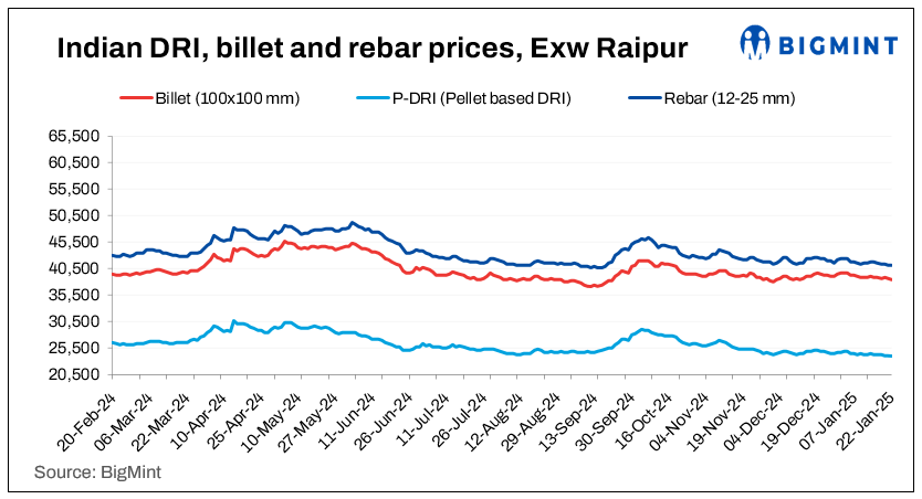 India’s induction furnace (IF) steel prices declined d-o-d on 22 January 2025. Across markets, mills reduced their offers by INR 50-600/tonne (t) compared to the previous trading session.