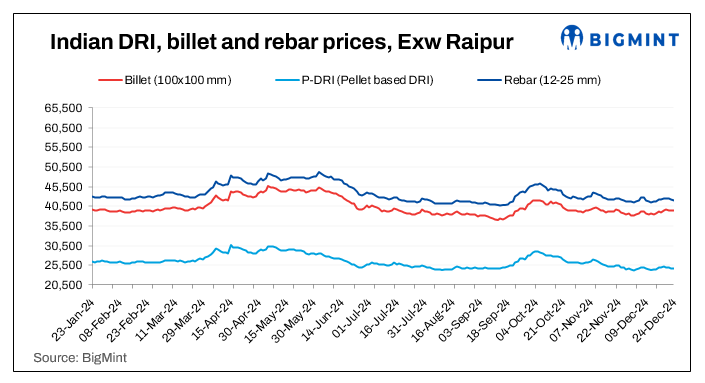 Sponge iron prices registered a d-o-d decline of INR 100-300/t, and the steepest fall was in the Raigarh market.