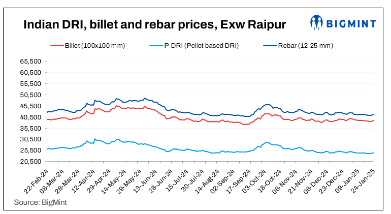 Billet increased by INR 150-250/t d-o-d, with the highest rise of INR 250/t recorded in the Raipur market.