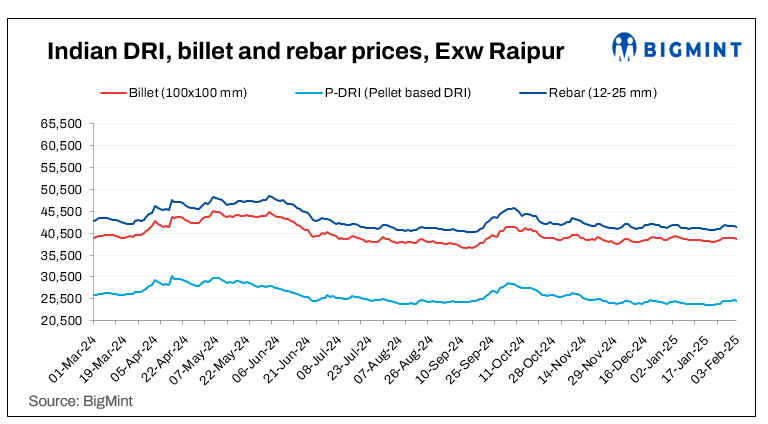 Sponge iron prices dropped by INR 100-200/t d-o-d, with the steepest fall of INR 200/t in the Bellary, Raipur, Raigarh and Hyderabad regions.