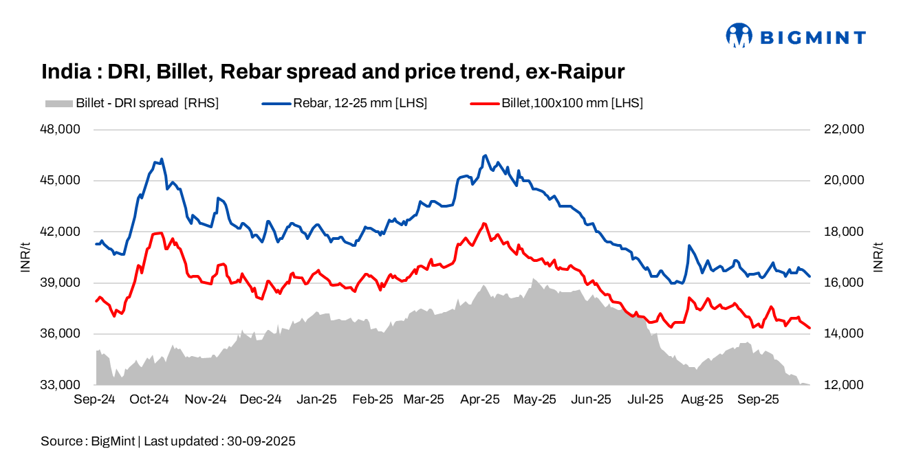 India’s induction furnace steel market witnessed a continued downtrend, as mill offers dropped by up to INR 500/t compared to the previous session, reflecting weak demand and market uncertainty.