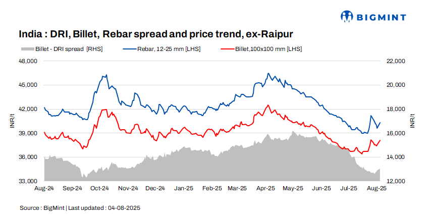 Sponge iron offers rose by INR 100-300/t d-o-d, with the sharpest rise of INR 300/t in the Durgapur, Hyderabad, and Raigarh markets.