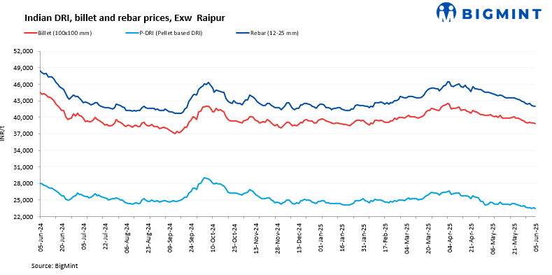Sponge iron offers dropped by INR 50-150/t d-o-d, with a steep fall in the Raipur, Raigarh and Durgapur market of INR 150/t.