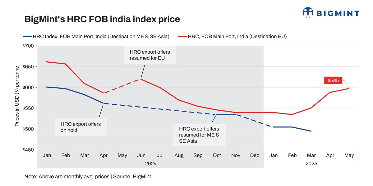 • Indian HRC export offers to EU stable amid weak demand