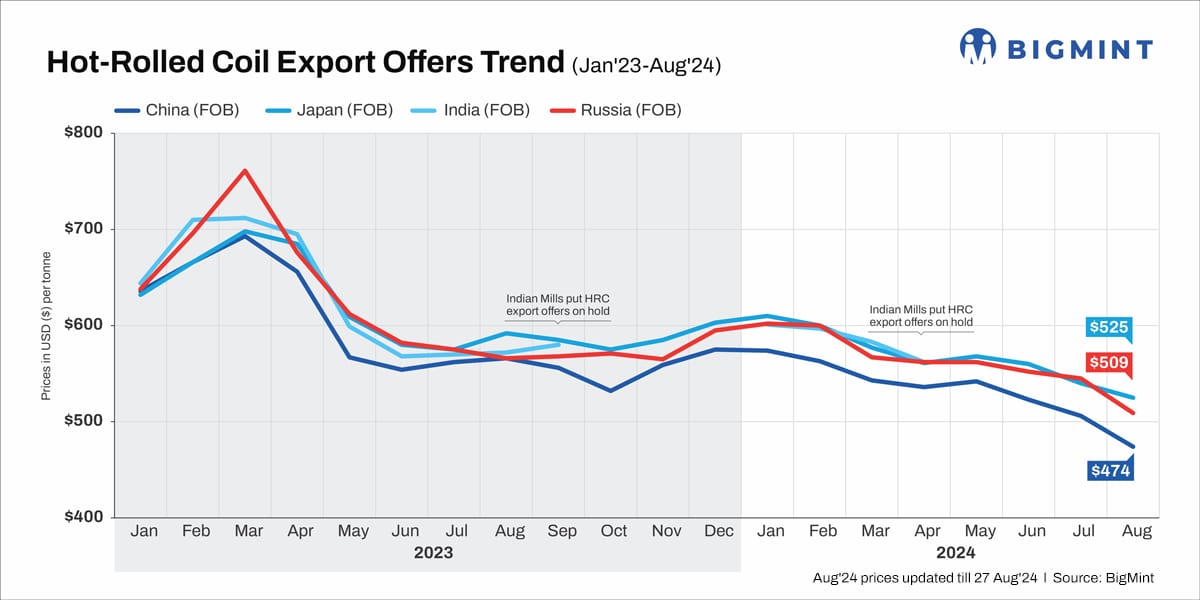 Indian steel mill’s HRC exports remain uncertain. Despite the current challenging market conditions, there are potential opportunities and factors that could impact prices and demand. European buyers are gradually returning from summer breaks; however, the anti-dumping investigations globally are making market participants cautious.