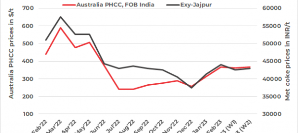 However, China’s met coke producers are planning to cut production by 30% to push prices up. Previously, the coke manufacturers’ price hike proposal got a mixed response from the steel mills as they were struggling with lower profit margins. As on 10 March, 2023, met coke prices in Hebei’s Tangshan stand at RMB 2,700/t, unchanged for almost the last two months.
